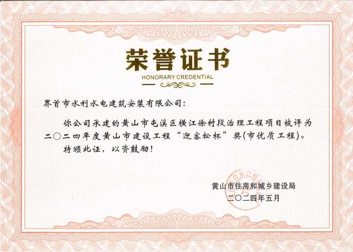 2024年5月荣获2024年度黄山市建设工程“迎客松杯”奖(市优质工程)